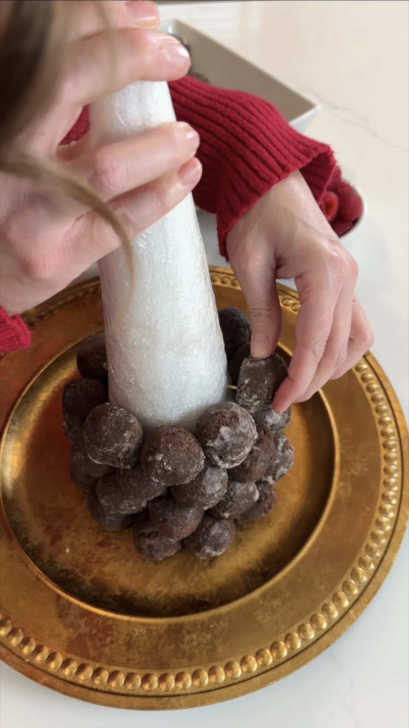 Set Up Your Station: Place the wrapped cone on a sturdy surface or platter for easy assembly.