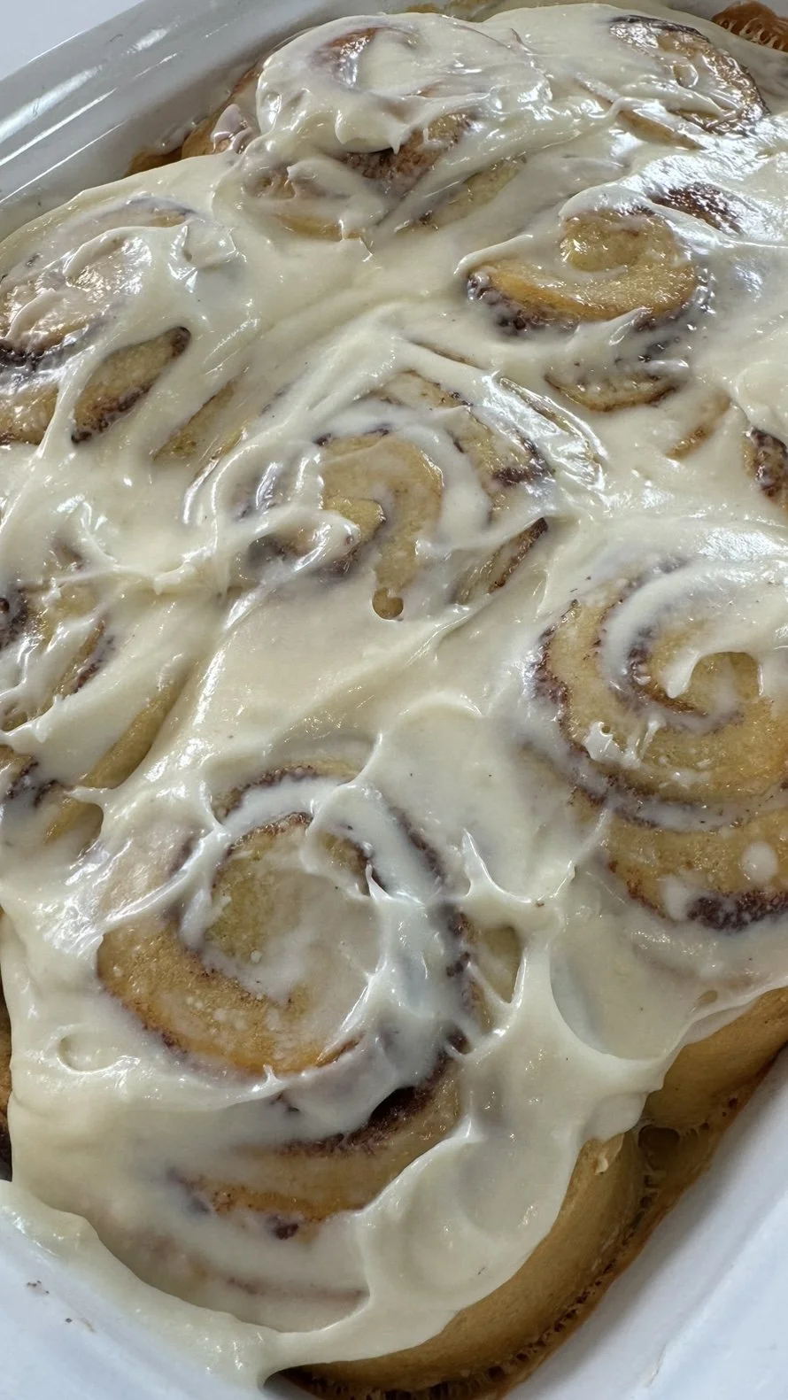 With your homemade cream cheese frosting prepared, it’s time to take those freshly baked cinnamon rolls out of the oven. As soon as they’re done baking and still warm, generously spread the cream cheese frosting over the top of each roll, allowing it to melt slightly and seep into all the nooks and crannies.