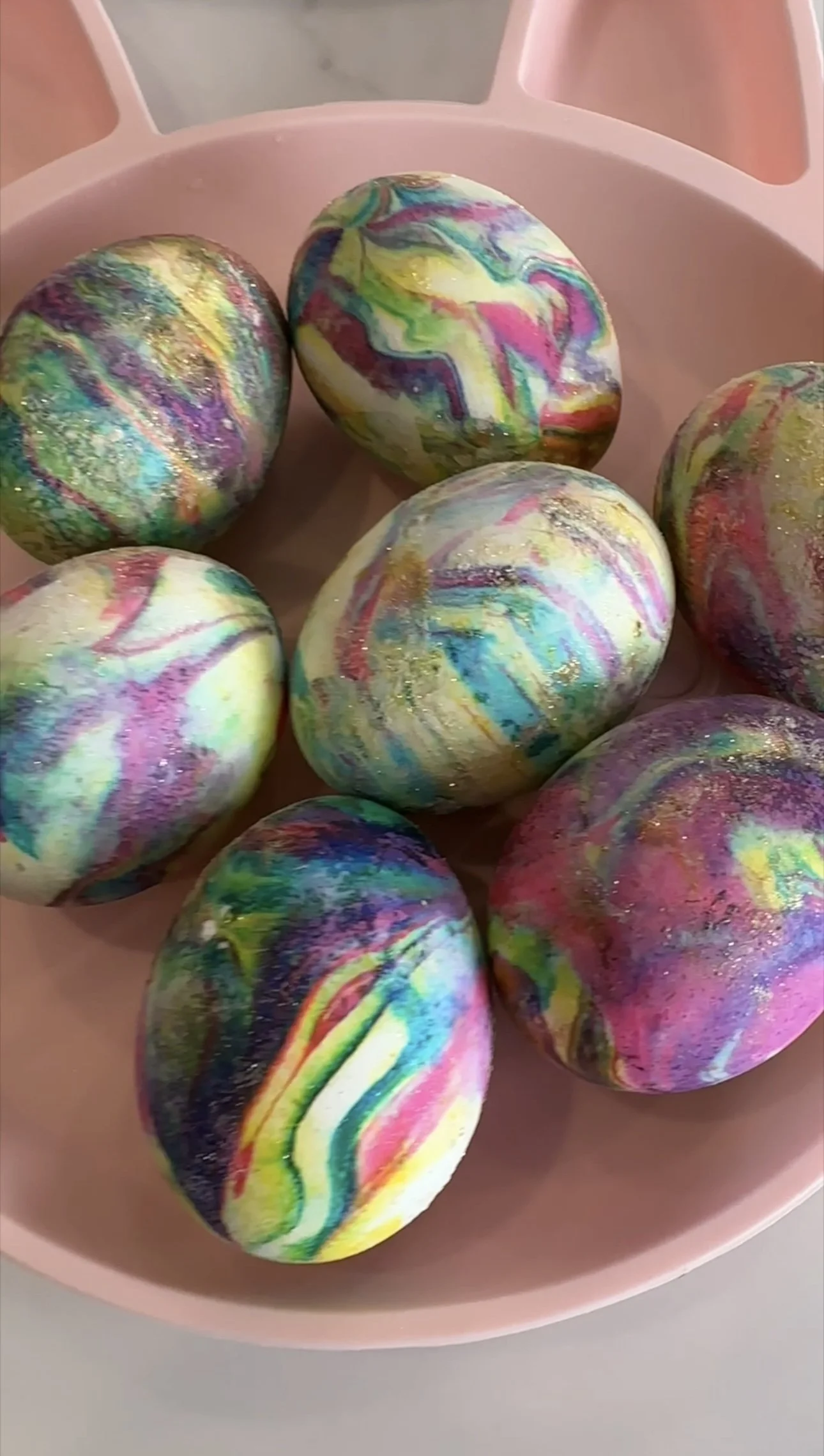Now that the Cool Whip has been removed and you’ve made your eggs extra sparkly, take a moment to admire your beautiful Cool Whip Easter eggs! The vibrant colors and intricate patterns created by the marbling technique are sure to impress everyone. Display your eggs in a decorative basket or egg carton, ready to be showcased as part of your Easter décor.