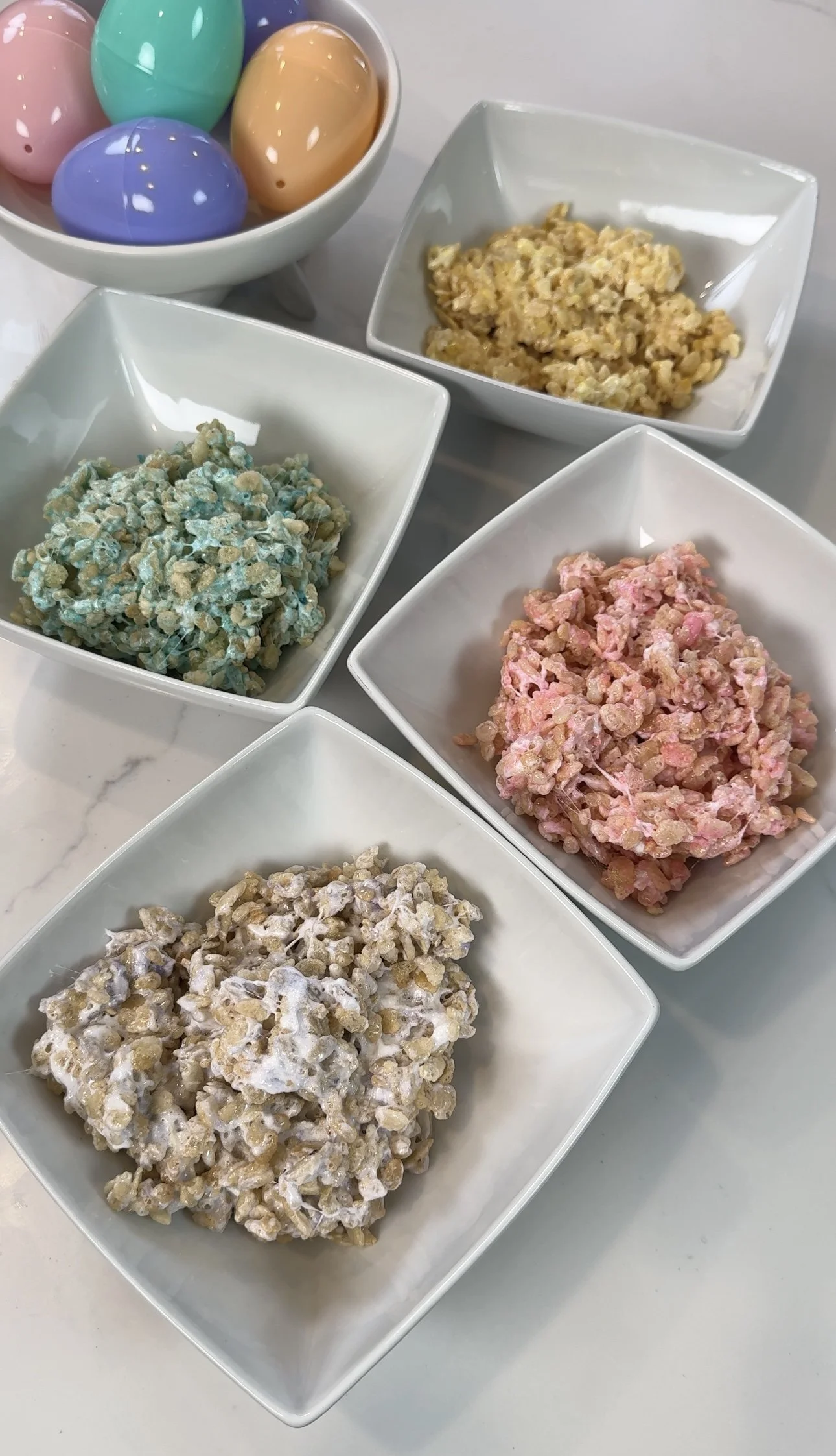 Gather all the necessary ingredients and equipment before starting. Ensure that the plastic Easter eggs are thoroughly washed and dried to prevent any contamination. Additionally, prepare four separate bowls, one for each color of Peeps marshmallows, and measure out 1 cup of Rice Krispies cereal for each bowl. Make sure the bowls are large enough to contain all of the contents as the Peeps expand in the microwave!