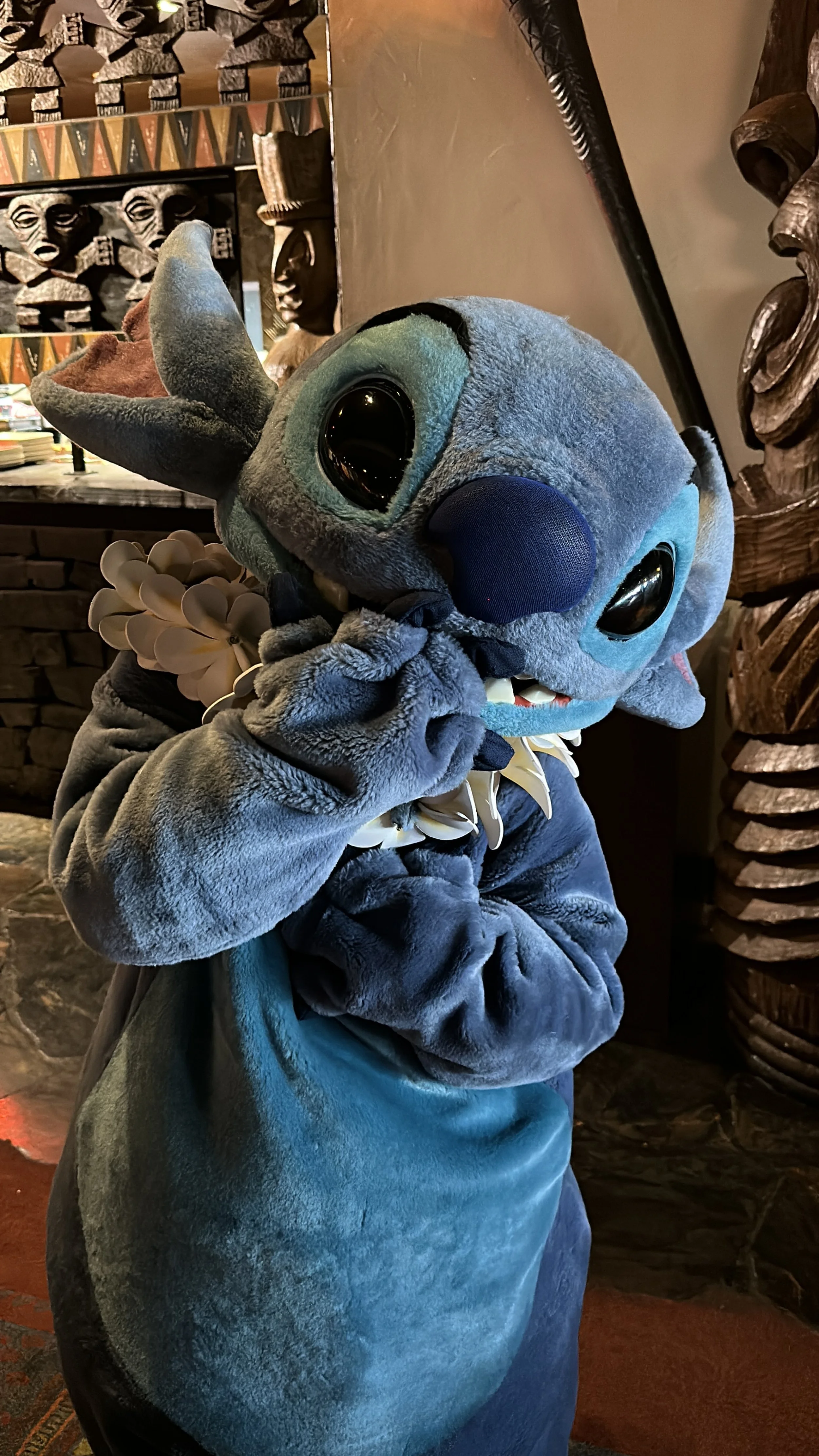 The character experience is at breakfast only, so make sure to book accordingly. Not only will the characters come out and march around the dining room while Hawaiian Roller Coast Ride plays but they also will come directly to your table. Again, such a great opportunity to get some 1 on 1 time with your favorite Disney characters. Prior to Covid, they would allow kids to march around the room with the characters, my kids adored this. I really how they bring that back soon.