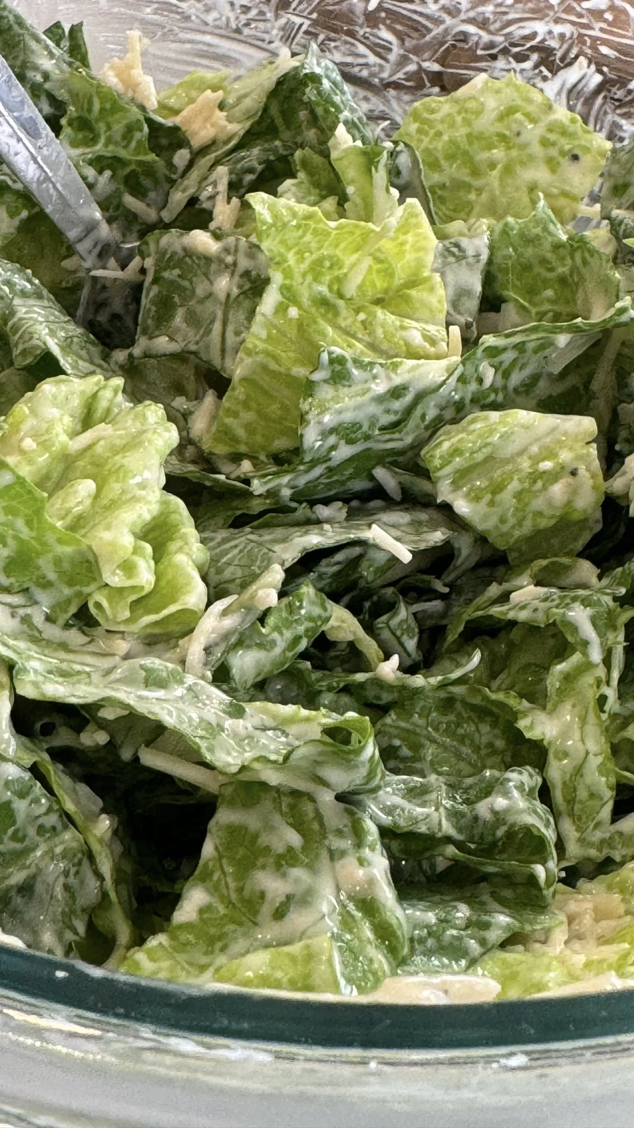 Approximately 1/2 cup Caesar salad dressing