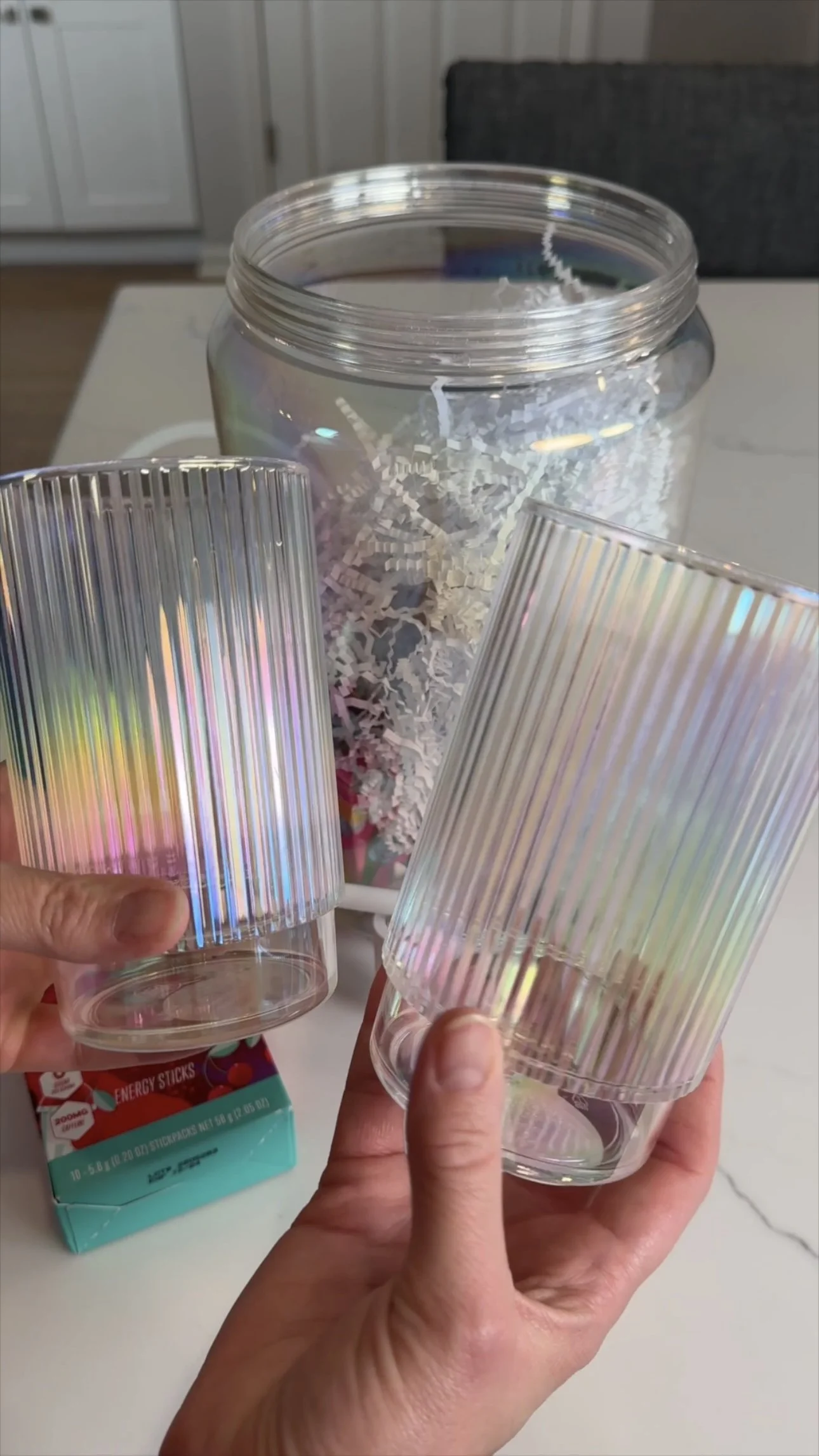 Start off the gift package with a pair of matching iridescent cups, adding a touch of sparkle to their daily routine. These cups are not only visually stunning but also practical for enjoying their favorite beverages in style. They are the perfect match to the beverage dispenser!