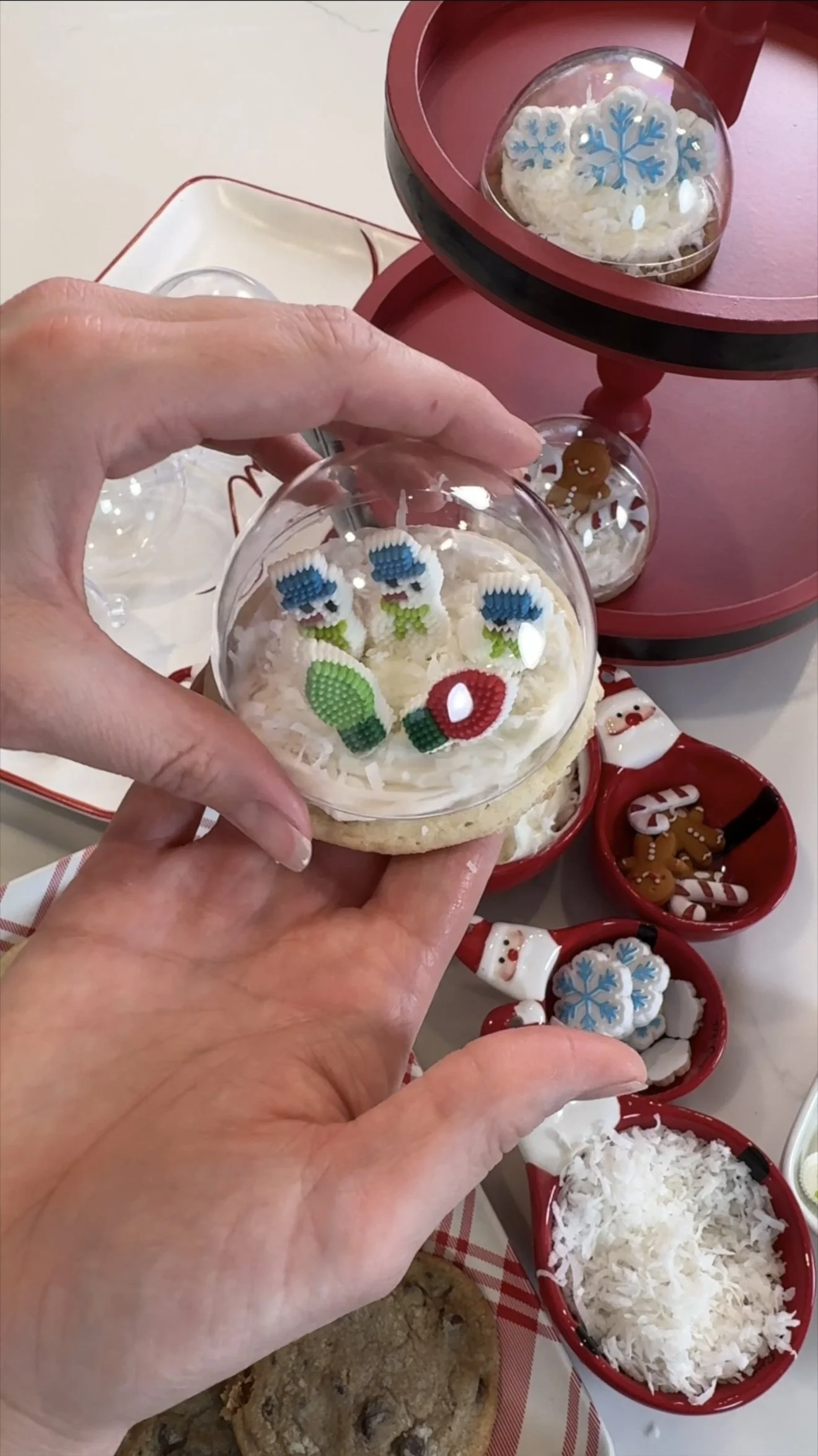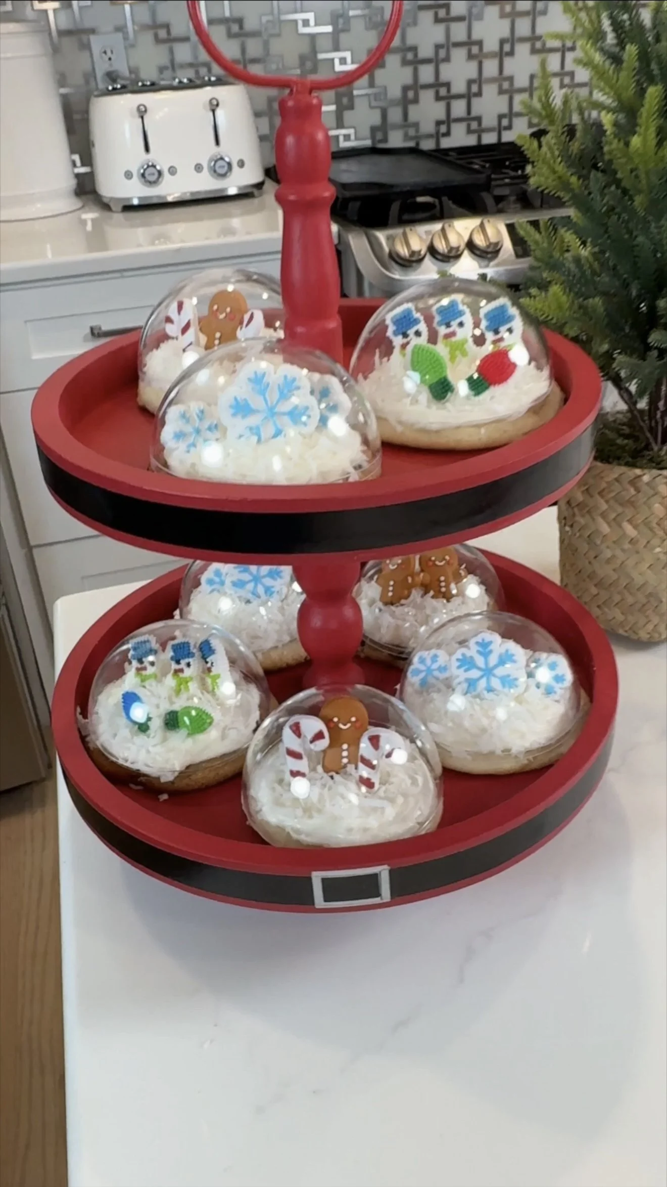 Arrange your snow globe cookies on a platter or tiered stand. These cookies make a beautiful centerpiece for your holiday dessert table.